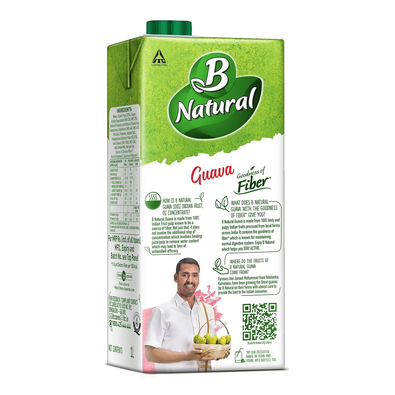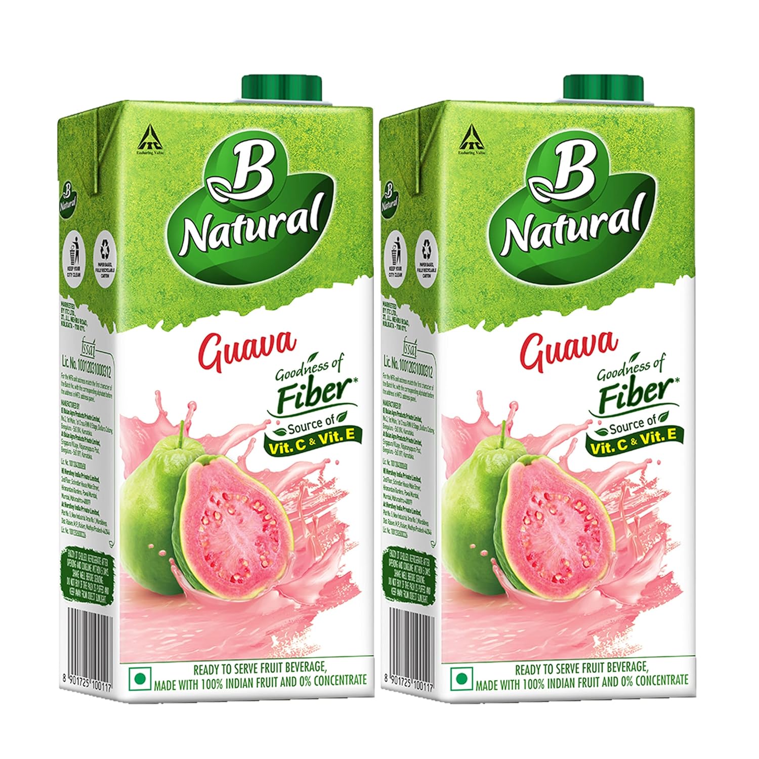 B Natural Guava Juice, Goodness of fiber, 1 litre (Pack of 2)