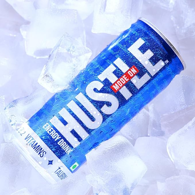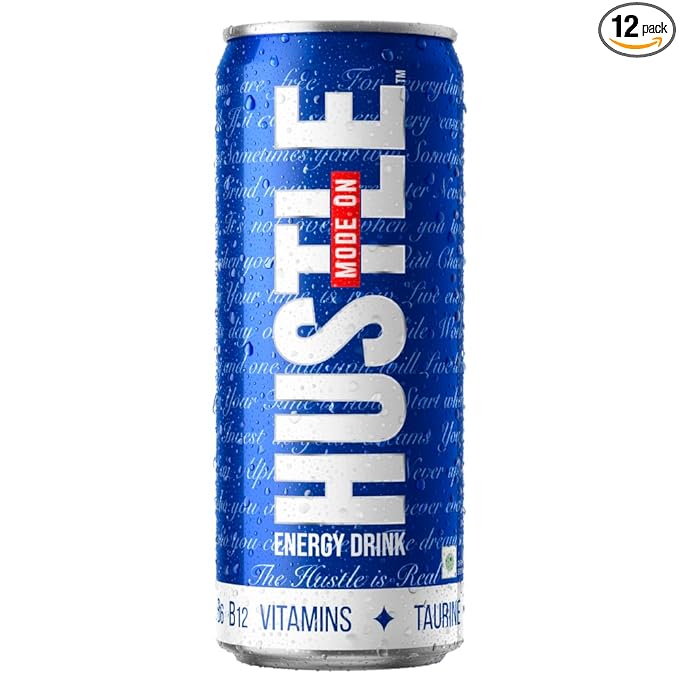Hustle Energy Drink Can – 250ml | Ignite Your Drive | B2, B6, B12 Vitamins | Energizing Beverage – Pack of 12
